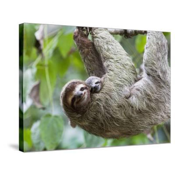 Brown Throated Sloth And Her Baby Hanging From A Tree Branch In Corcovado National Park Costa Rica Animals Botanical Figurative Gallery Wrapped Canvas Print Wall Art By Jim Goldstein Walmart Com